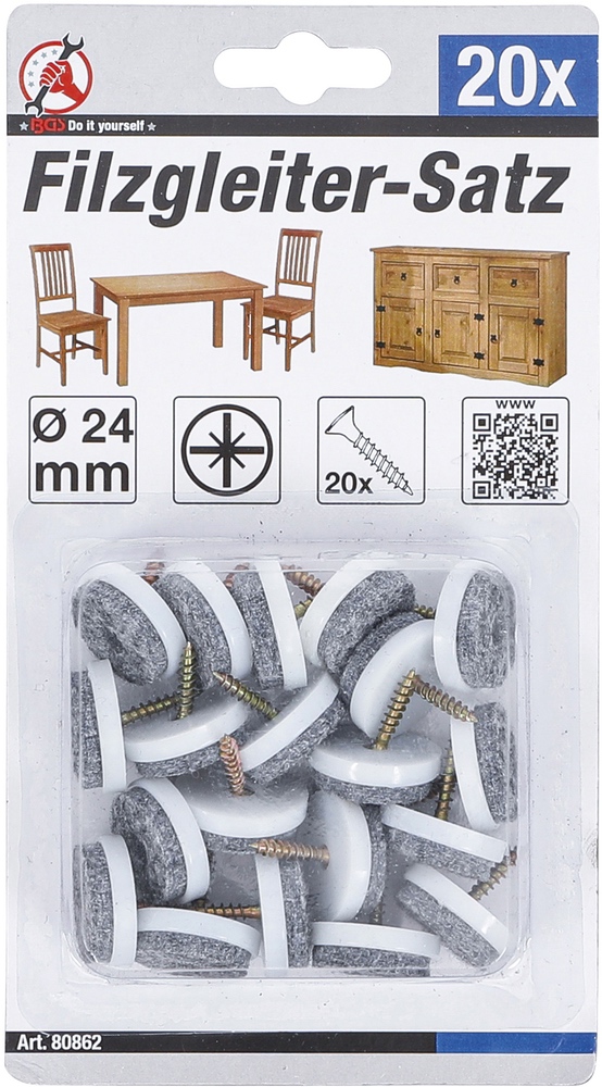 Podložky filcové pod nábytok, so skrutkou, Ø 24 mm, 20 dielov, BGS 80862