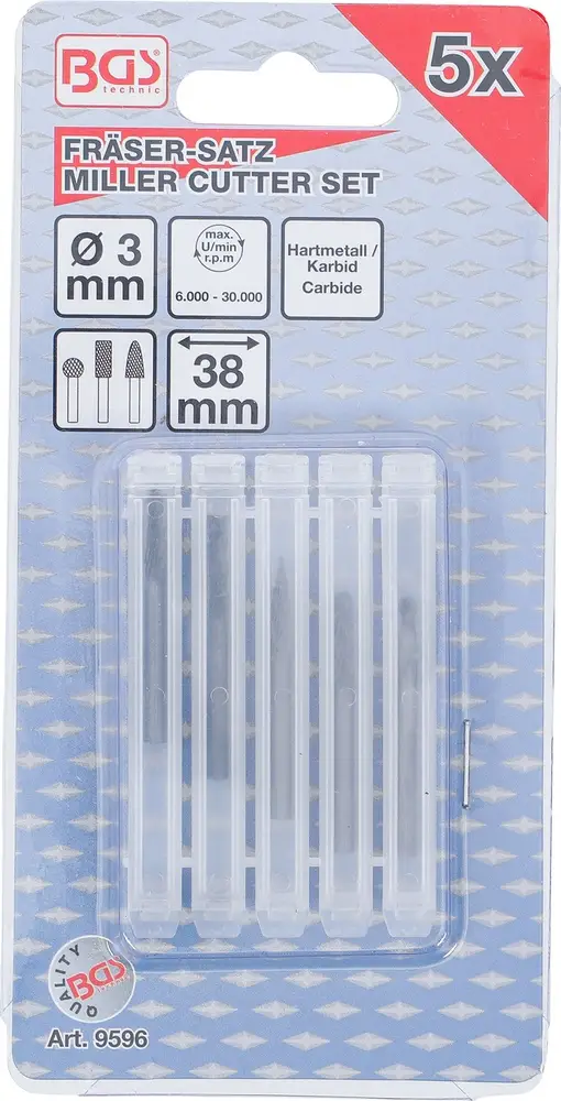 Frézy HSS, extra krátke, 5 dielov, BGS 9596