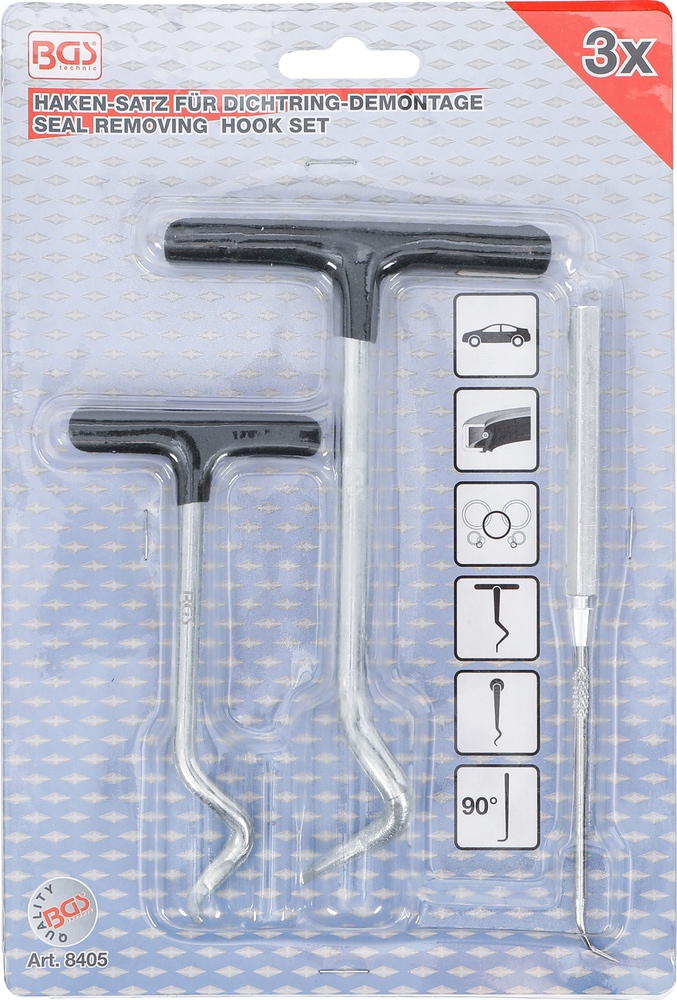 Háky na demontáž tesnenia, 3 diely, BGS 8405