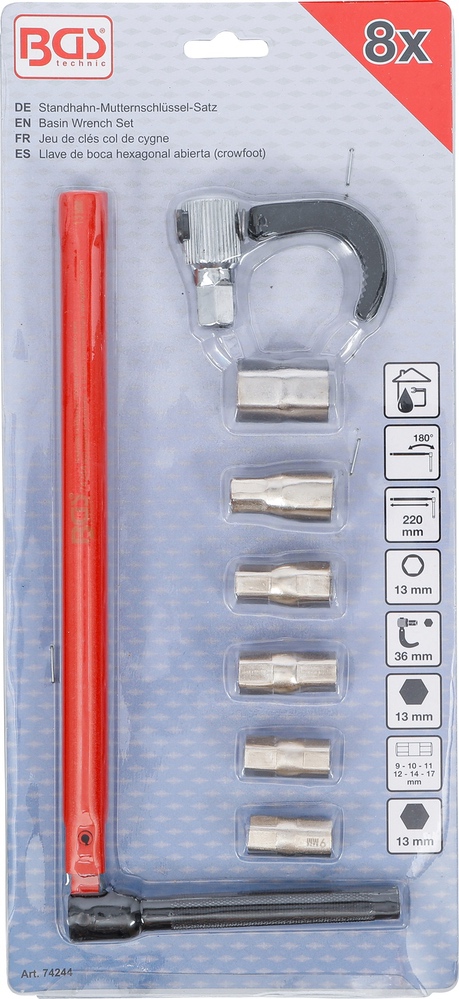Kľúč hákový na matice, s hlavicami, 8 dielov, BGS 74244