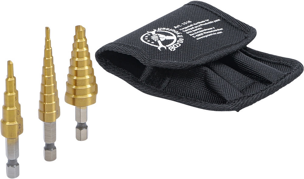 Vrtáky stupňovité HSS, 3 – 20 mm, 3 diely, BGS 1616