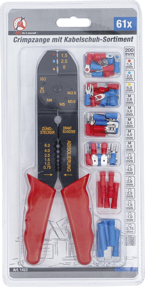 Kliešte konektorové / odizolačné s káblovými okami, 200 mm, 61 dielov, BGS 1423