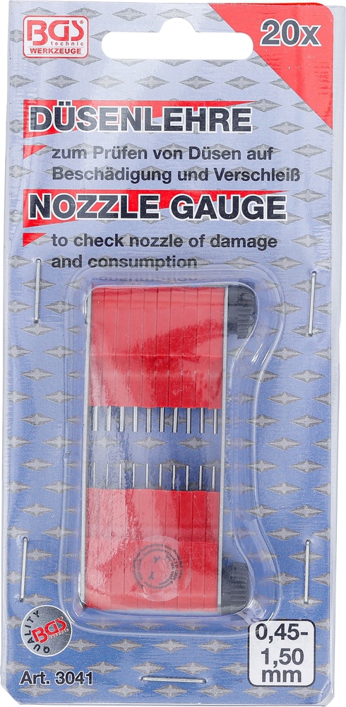 Mierky na trysky, 0,45 – 1,50 mm, 20 dielov, BGS 3041