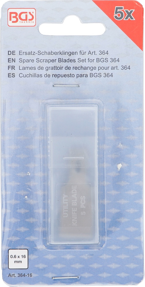 Čepele 0,6 x 16 mm, náhradné pre škrabku BGS kat. č. 100364, 5 dielov