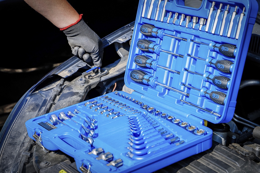 Sada náradia, 1/4″ + 1/2″, E-profil / T-profil, 84 dielov, BGS 7849