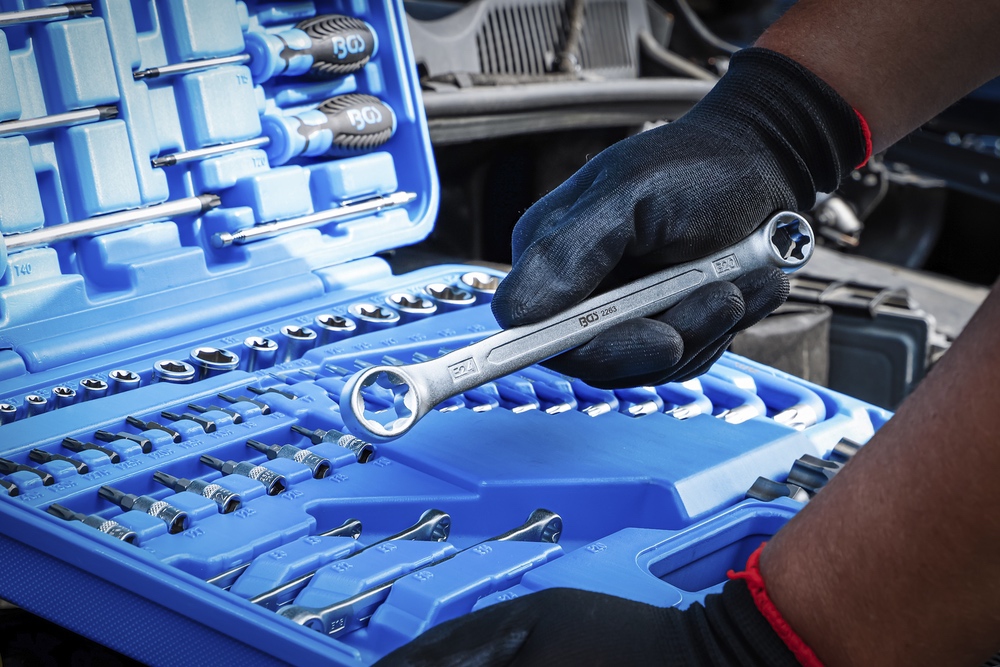 - 4 obojstranné očkové kľúče, E-profil: E6 x E8 – E10 x E12 – E14 x E18 – E20 x E24