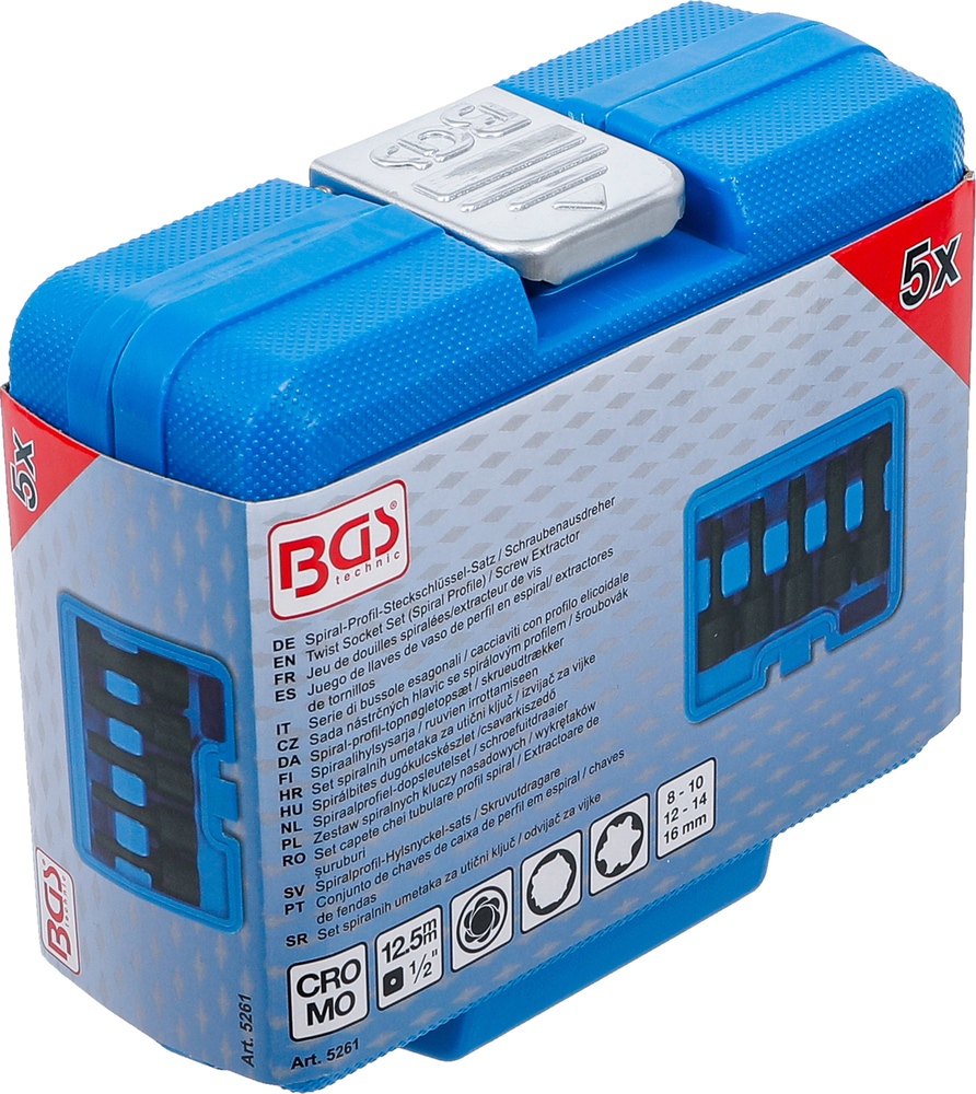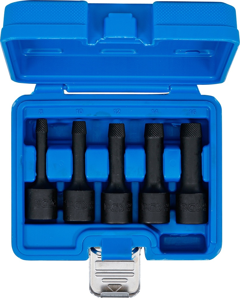 Hlavice špirálové 1/2″, vyťahovák poškodených skrutiek, 8 – 16 mm, 5 dielov