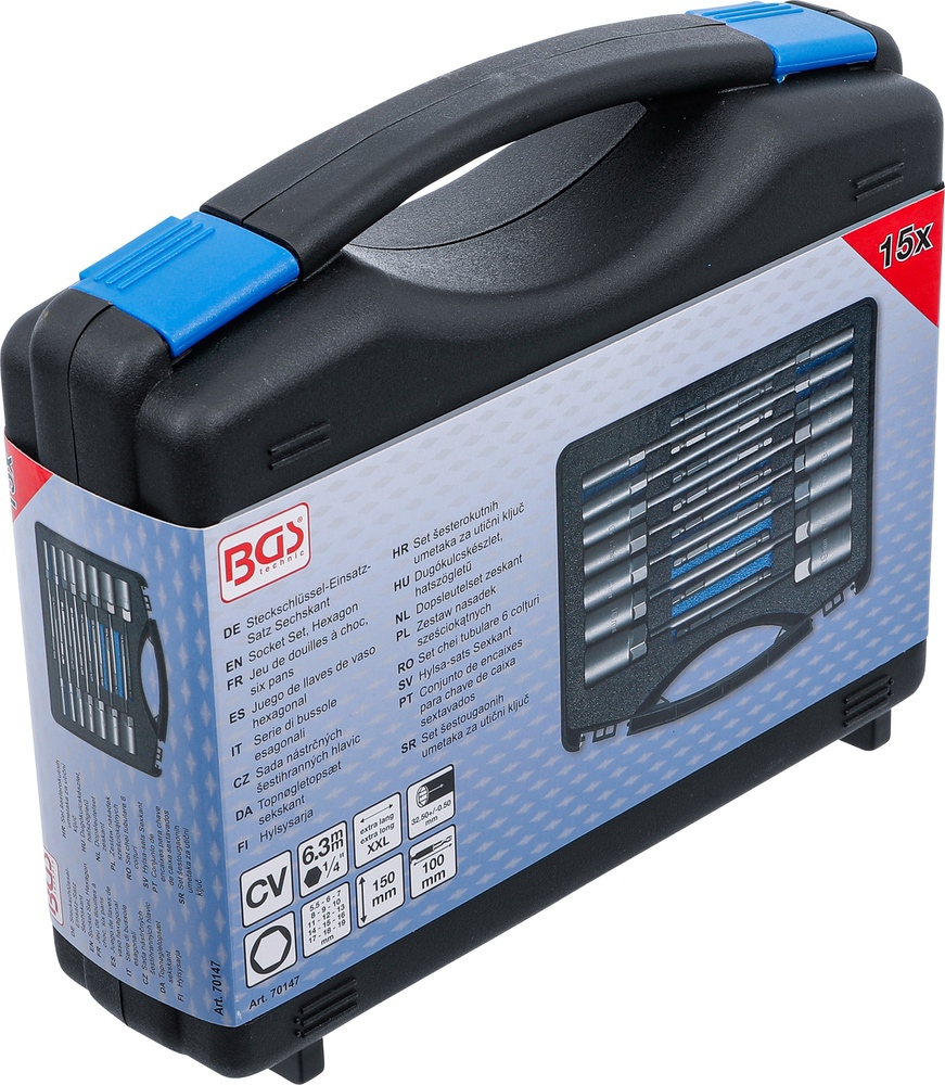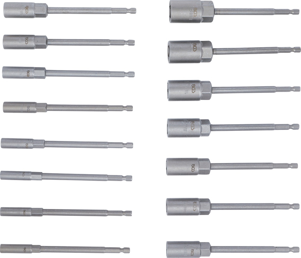 Hlavice nástrčné, 6-hran, extra dlhé, pre elektrické vŕtačky, 5,5 – 19 mm, 15 dielov