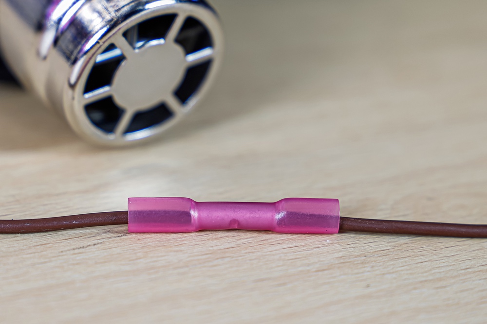 - zahriatím pomocou teplovzdušného prístroja spojí spájka vo vnútri týchto izolačných konektorov konca káblov