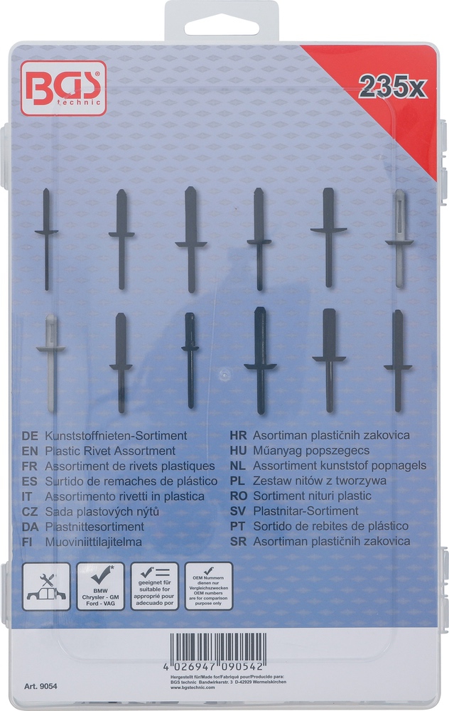 Nity plastové, pre GM, BMW, Chrysler, VW, Ford, 235 dielov, BGS 9054
