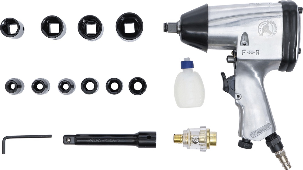 Uťahovák pneumatický úderový 1/2″, s náradím, 312 Nm, 16 dielov, BGS 3211