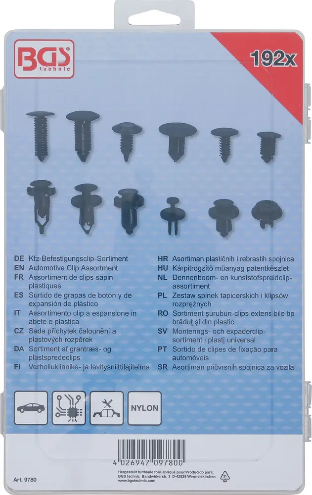 Príchytky automotive, univerzálne, 192 dielov, BGS 9780