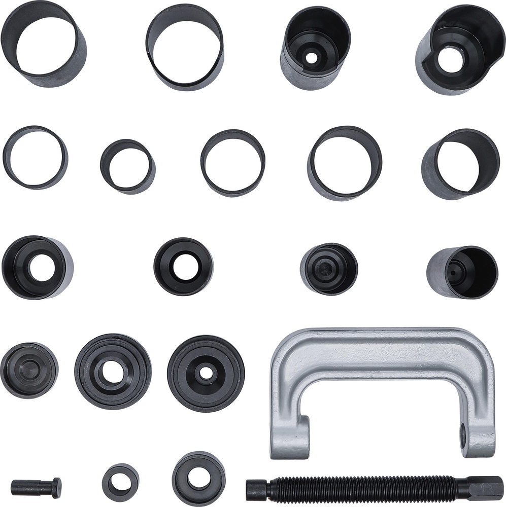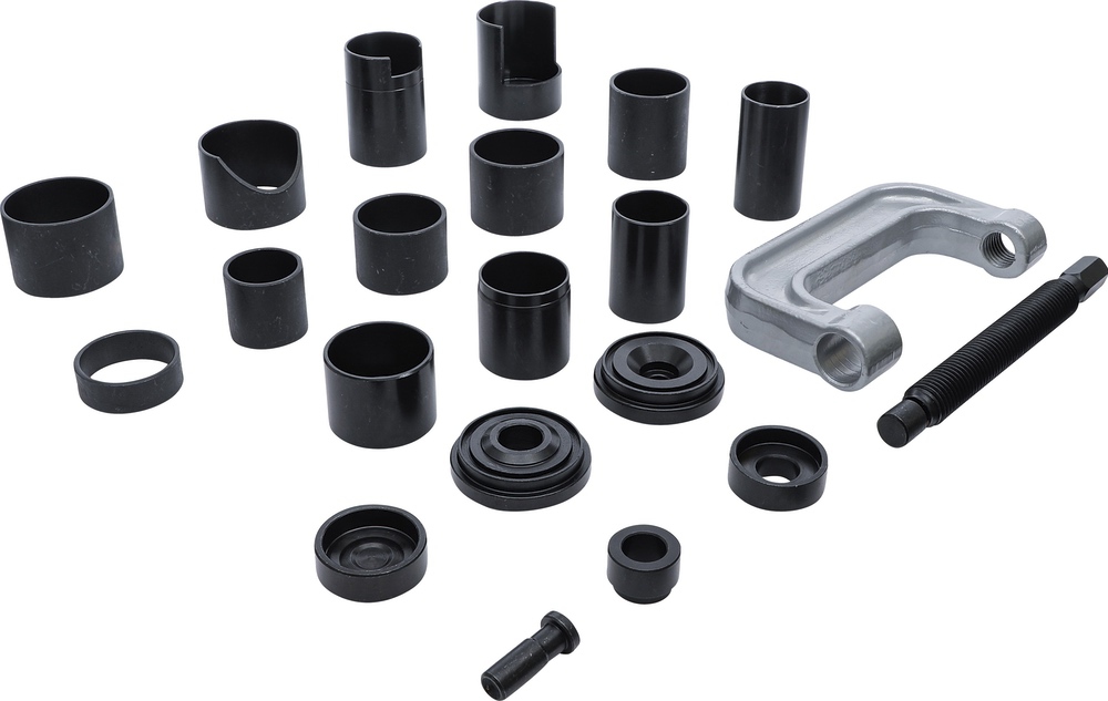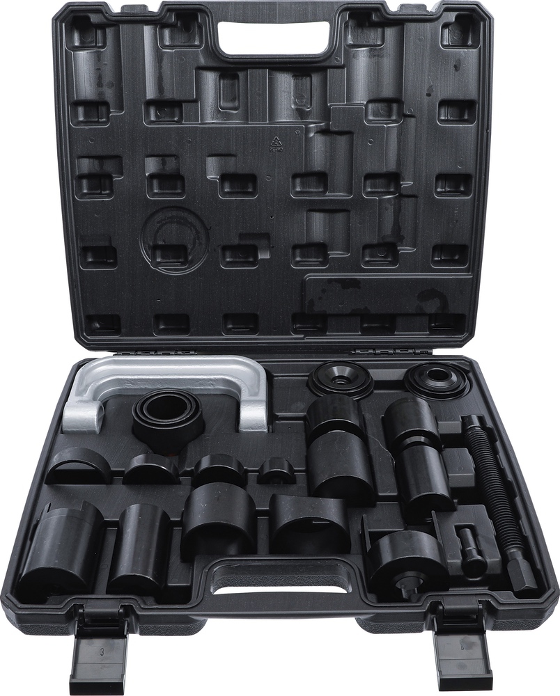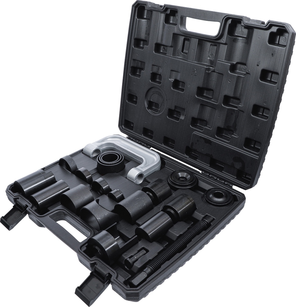 - sada obsahuje všetky potrebné puzdrá a tvarovacie segmenty pre výmenu guľových kĺbov u väčšiny US vozidiel, ako sú napr. GM, Ford a Dodge s pohonom dvoch kolies a pickup s pohonom všetkých kolies, tiež u mnohých európskych dodávok a SUV