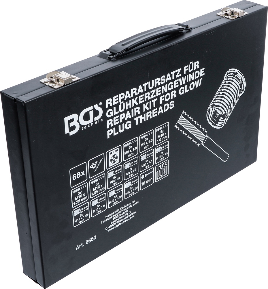 Sada na opravu závitov žeraviacich sviečok, M8 – M9 – M10 – M12, BGS 8653
