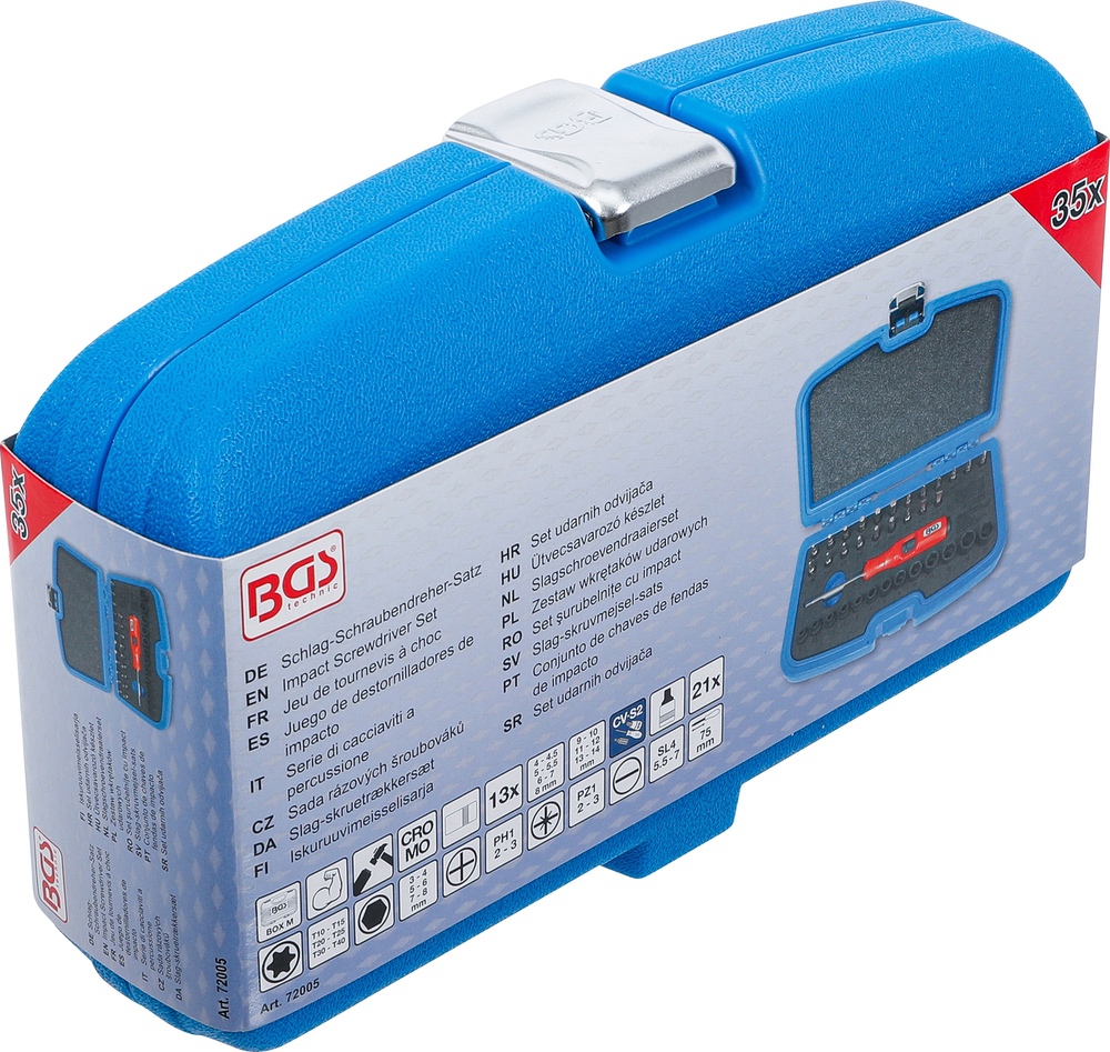 Skrutkovač úderový s bitmi a hlavicami, 1/4″, 36 dielov, BGS 72005
