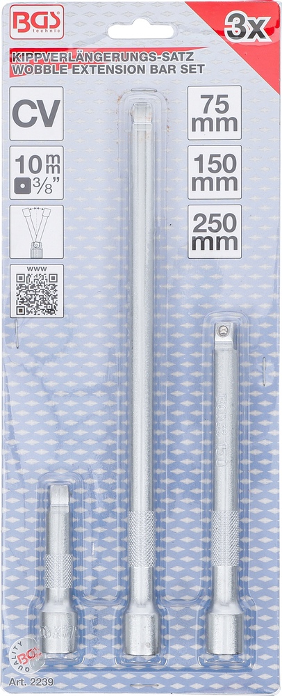 Predĺženia 3/8″, výkyvné, 75 / 150 / 250 mm, 3 diely, BGS 2239