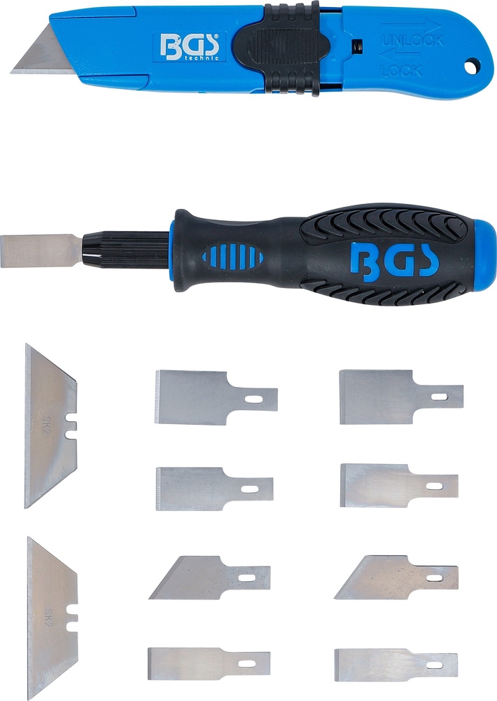 - s 5 lichobežníkovými čepeľami napr. pre lepidlo na sklo, plagáty atď.