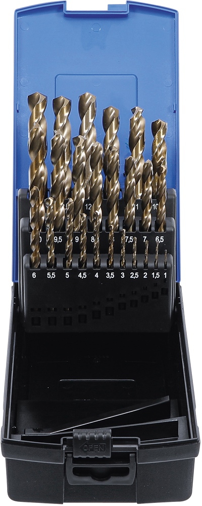 Vrtáky špirálové, HSS-G M35 kobaltová oceľ, 1 – 13 mm, 25 dielov, BGS 116