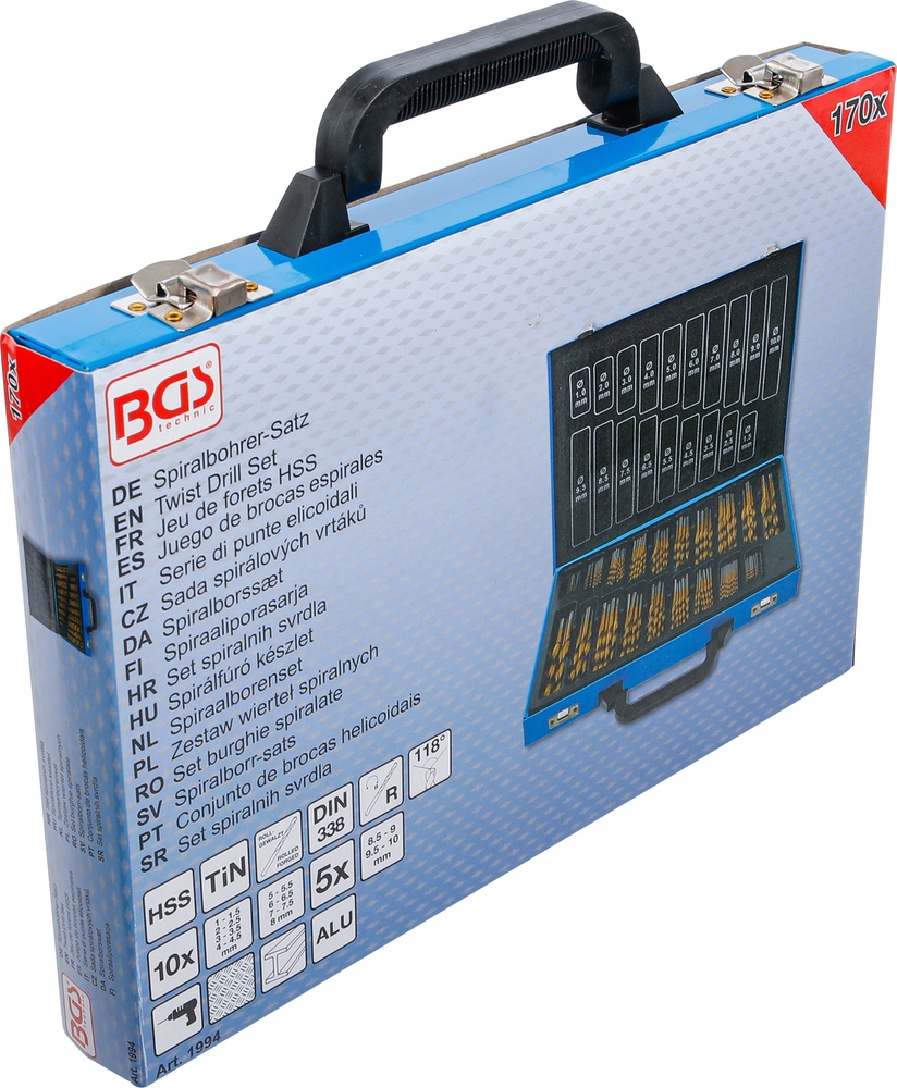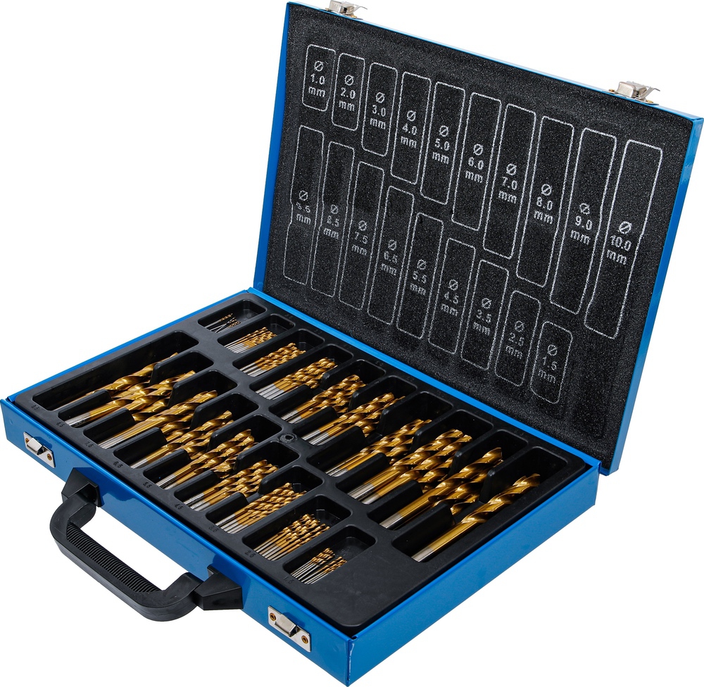 Vrtáky špirálové, HSS, nitrid titánu, 1 – 10 mm, 170 dielov, BGS 1994