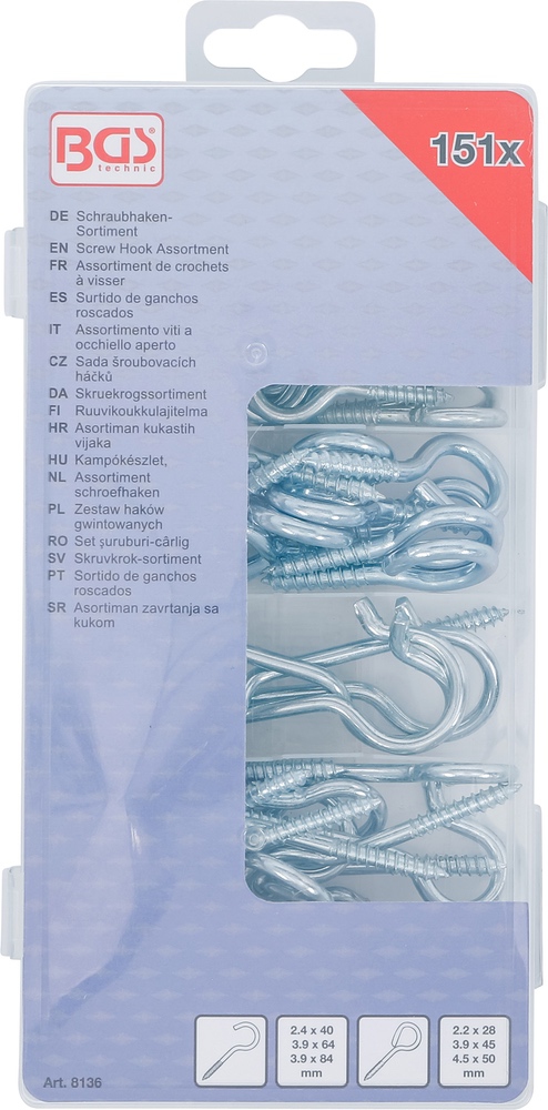 Háčiky a očká skrutkovacie, 151 dielov, BGS 8136