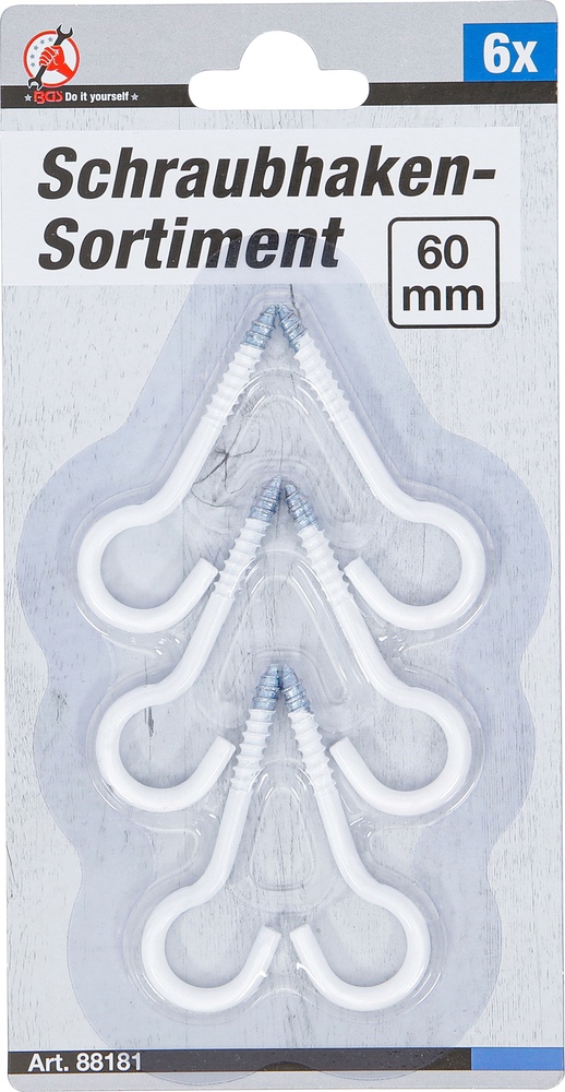 Háčiky skrutkovacie, poplastované, 60 mm, 6 dielov, BGS 88181