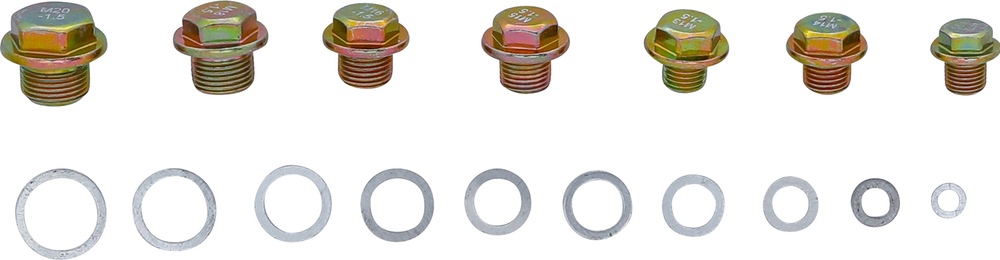 - vypúšťacie skrutky oleja: 5x M10 – 5x M12 – 5x M13 – 5x M14 – 5x M15 – 3x M16 – 3x M krúžky z hliníka: 50×6 mm – 50×8 mm – 50×10 mm – 50×12 mm – 50×13 mm – 50×14 mm – 50×15 mm – 50×16 mm – 50×18 mm – 50×20 mm