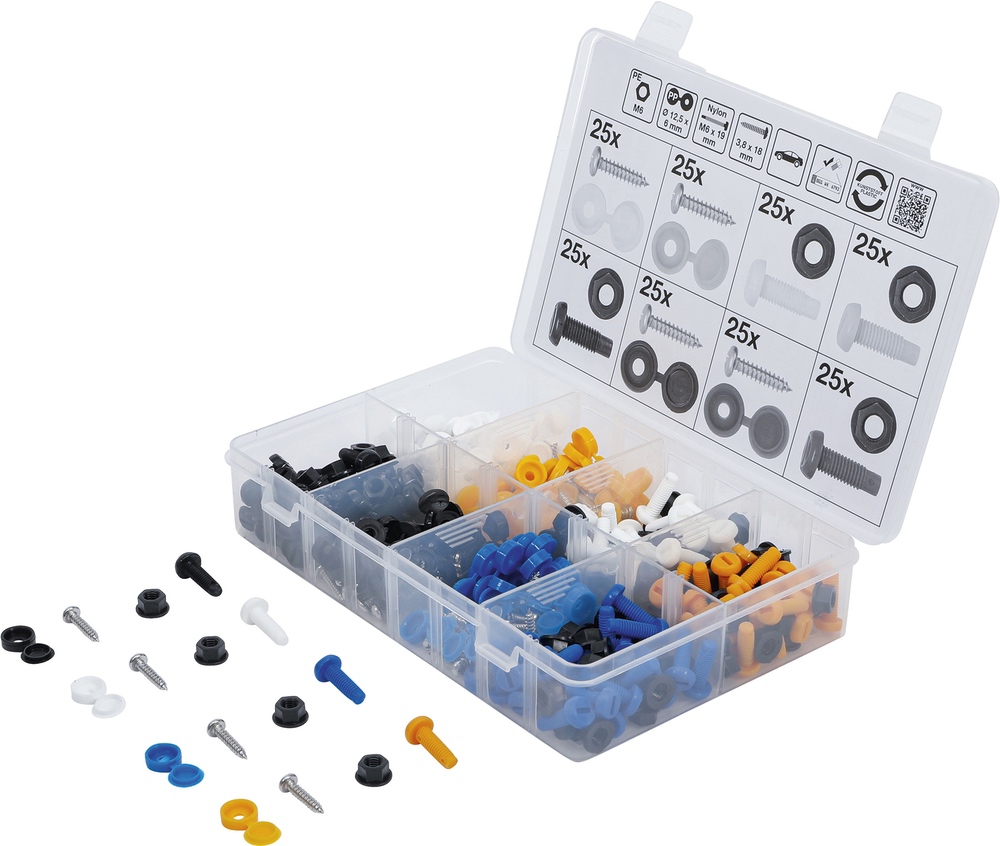 - 25 plastových skrutiek (modré) M6 × 19 mm plast skrutiek (čierne) M6 × 19 mm s čiernymi plastovými maticami M6