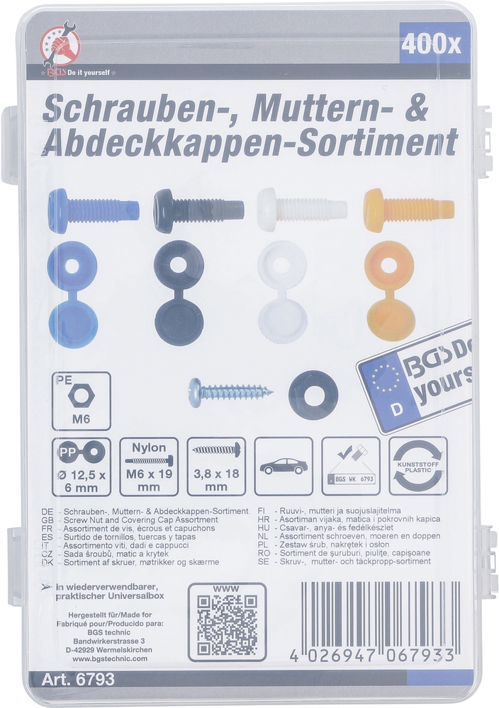 Skrutky, matice, krytky, 400 dielov, BGS 6793
