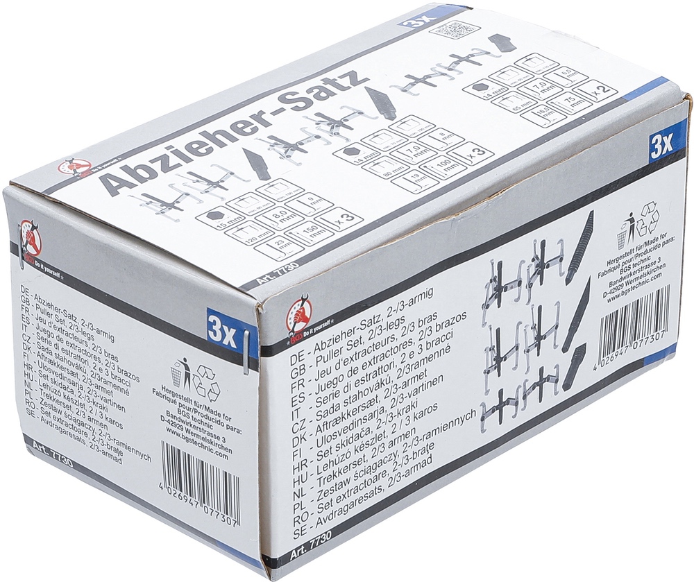 Sťahováky vonkajšie / vnútorné, 2- a 3-ramenné, 75 – 100 – 150 mm, 3 diely, BGS 7730