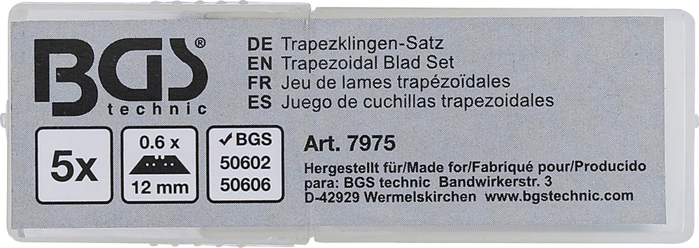 Čepeľ lichobežníková, 0,6 x 12 mm, 5 dielov, BGS 7975