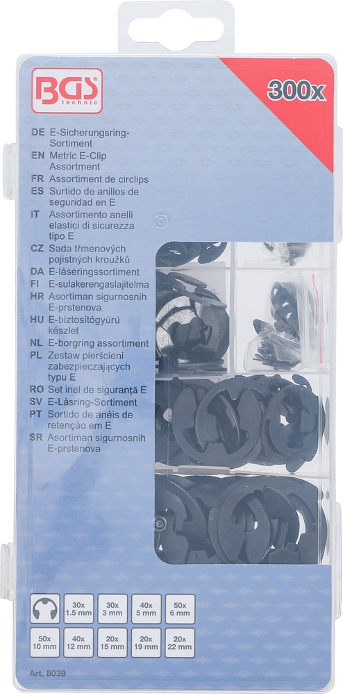 Krúžky poistné, strmeňové, 1,5 – 22 mm, 300 dielov BGS 8039