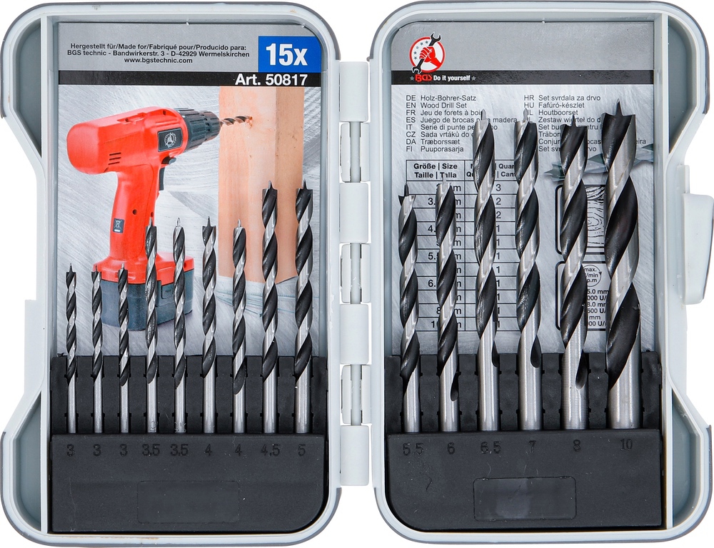 Vrtáky do dreva, 3 – 10 mm, 15 dielov, BGS 50817
