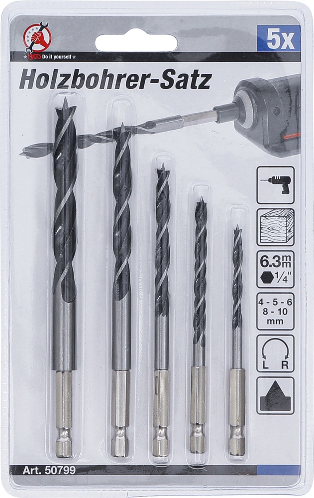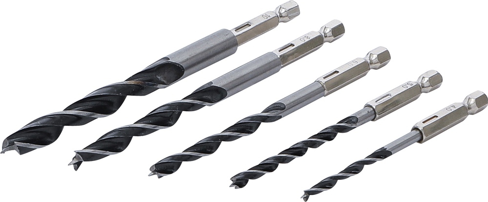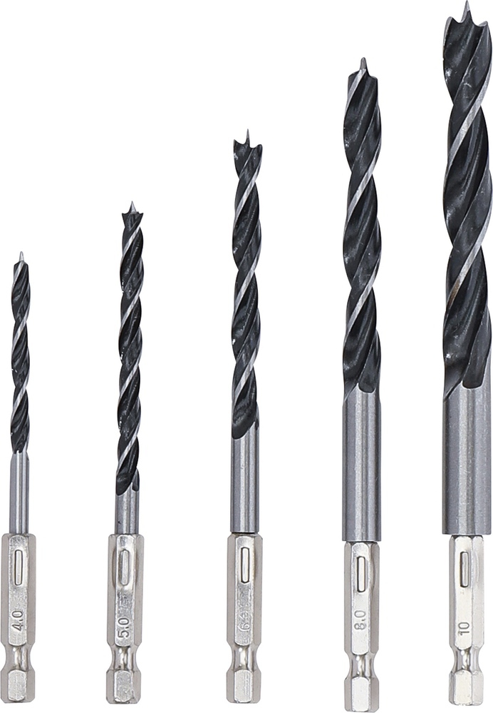 Vrtáky do dreva, 6 – 14 mm, 6-hranný hriadeľ, 5 dielov, BGS 50799