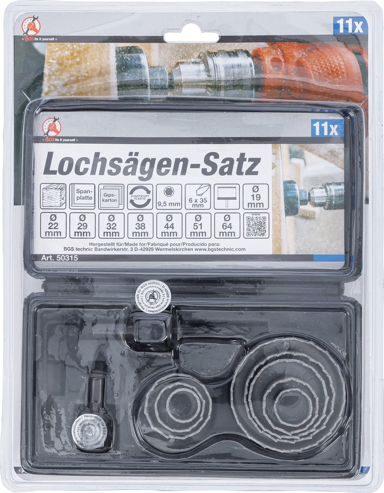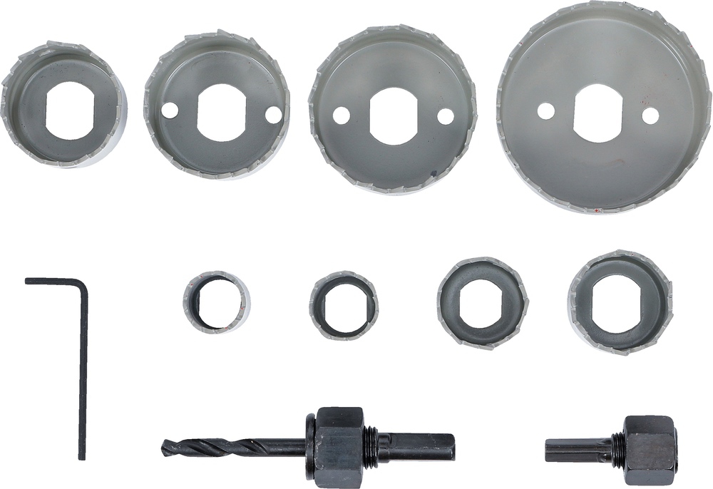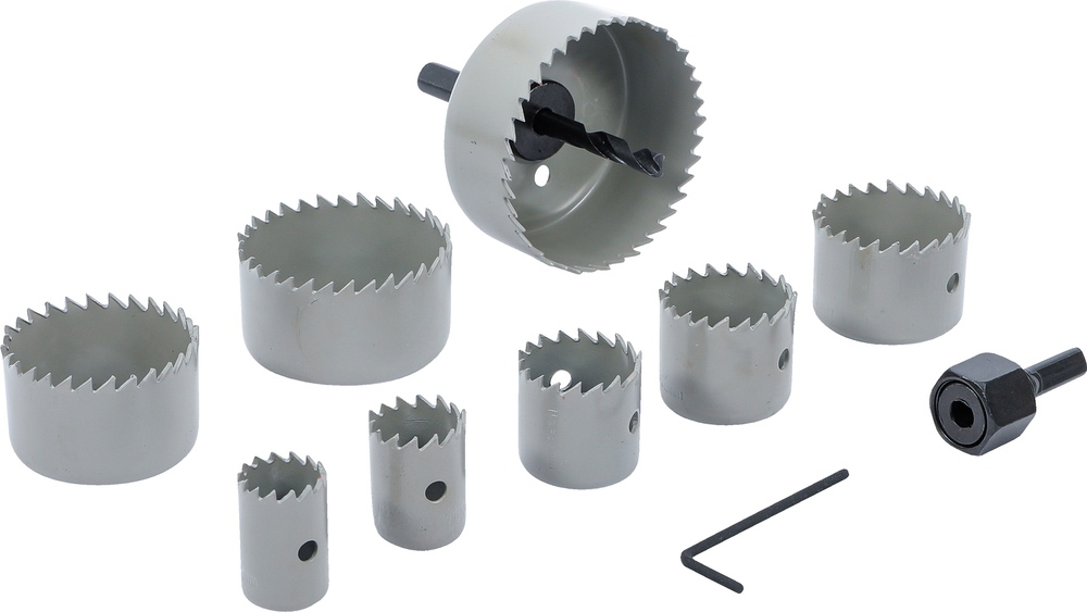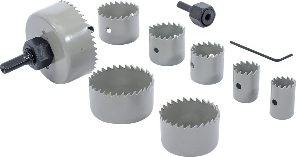 Píly vykružovacie, Ø 19 – 64 mm, hĺbka 24 mm, 11 dielov, BGS 50315
