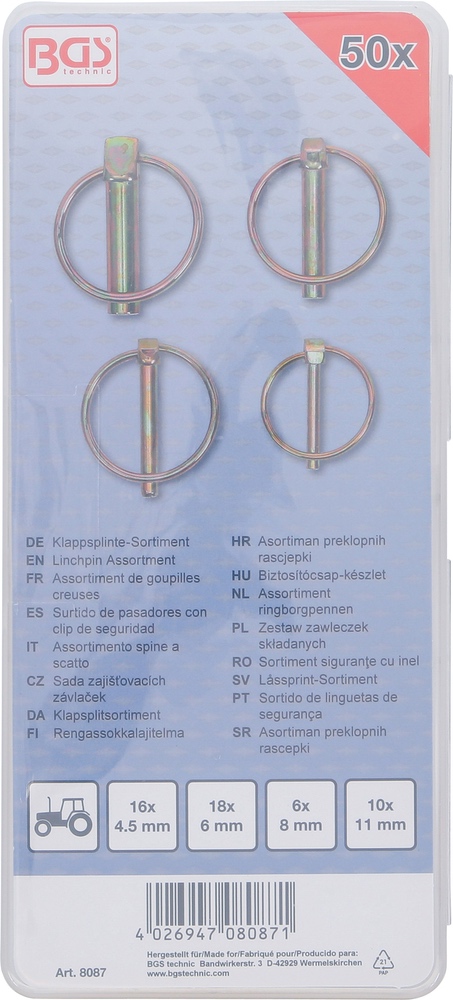 Kolíky zaisťovacie, 4,5 – 11 mm, 50 dielov, BGS 8087
