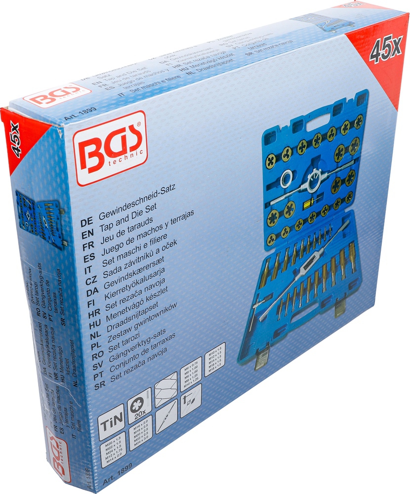Závitníky a očká, M6 – M24, nitrid titánu, 45 dielov, BGS 1899