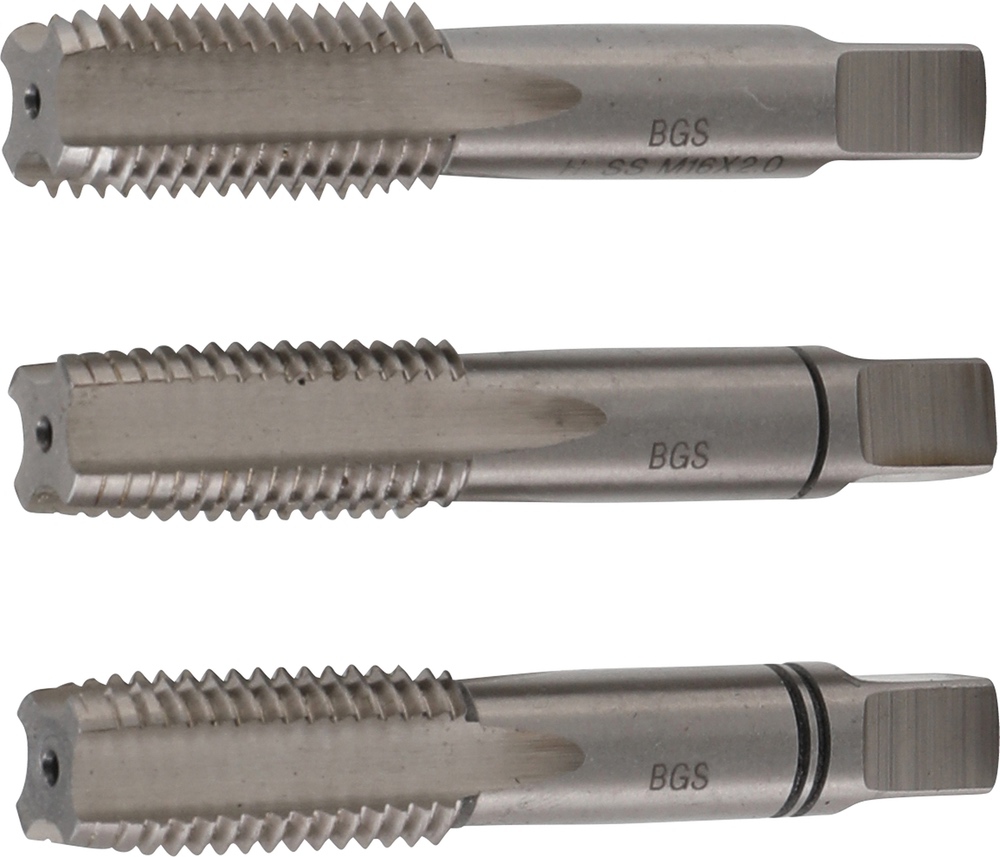 Závitníky, predrezávací, rezací, dorezávací, HSS-G, M16 x 2, 3 diely, BGS 928