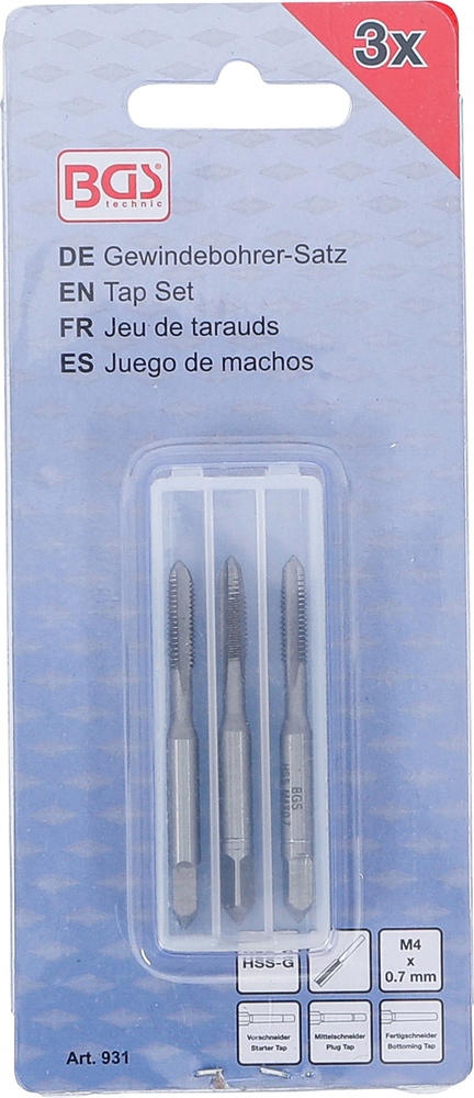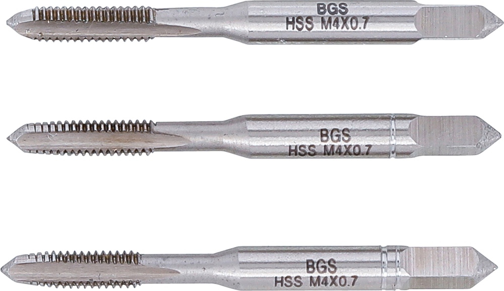 Závitníky, predrezávací, rezací, dorezávací, HSS-G, M4 x 0,7 mm, 3 diely
