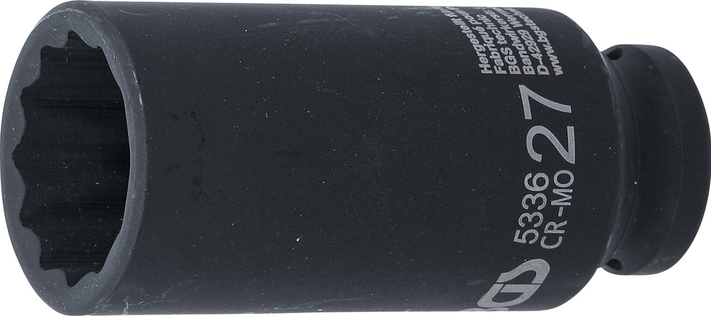 Hlavica nástrčná tvrdená, 1/2″, predĺžená, 12-hran, 27 mm, BGS 5336