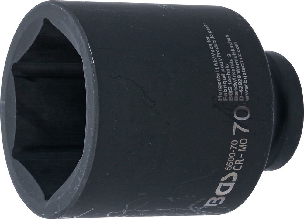 Hlavica nástrčná tvrdená, 6-hran, predĺžená, 1″, 70 mm, BGS 5500-70