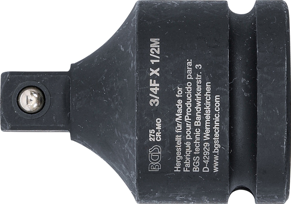 Adaptér pre hlavice, tvrdený, vnútorný 4-hran 3/4″ x vonkajší 4-hran 1/2″