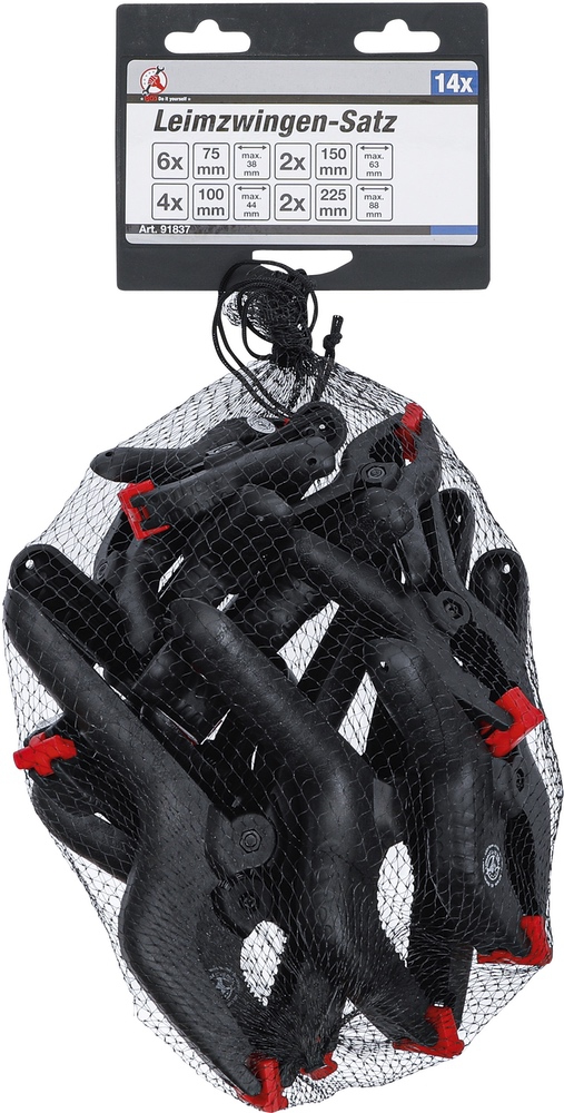 - 2 pomocných svoriek, dĺžka: 225 mm, rozsah upnutia: 0 – 88 mm