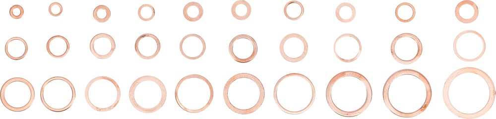 - 10 medených tesniacich krúžkov, Ø 24 x 32 mm, 0 tesniacich krúžkov, Ø 26 x 34 mm, hrúbka 2,0 mm