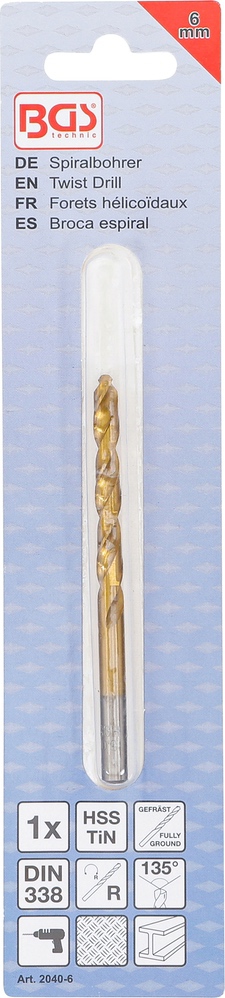 Špirálový vrták | HSS-G | s titánovým povrchom | 6,0 mm
