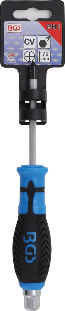 Skrutkovač krížový PH1, dĺžka čepele 75 mm, so 6-hranom, BGS 7911