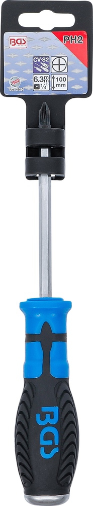 Skrutkovač krížový PH2, dĺžka čepele 100 mm, so 4-hranom 1/4″, BGS 4910