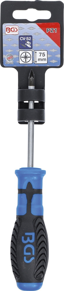 Skrutkovač krížový PZ1, dĺžka čepele 75 mm, protišmyková rukoväť, BGS 4932