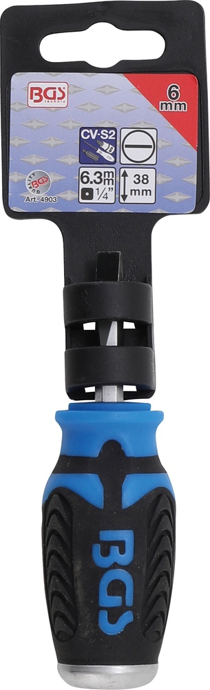 Skrutkovač plochý SL 6 mm, dĺžka čepele 38 mm, so 4-hranom 1/4″, BGS 4903