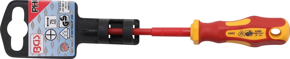 Skrutkovač elektrikársky VDE, krížový PH0, dĺžka čepele 75 mm, BGS 4942