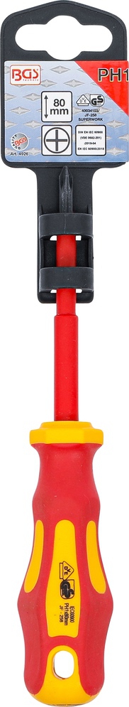 Skrutkovač elektrikársky VDE, krížový PH1, dĺžka čepele 80 mm, BGS 4926